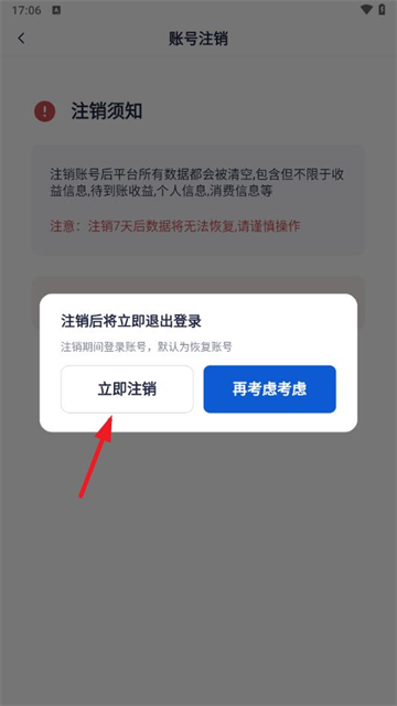 6、点击“立即注销”按钮即可注销成功。