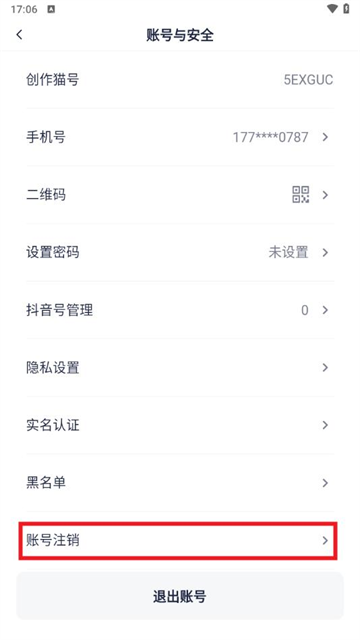 4、点击“账号注销”选项;