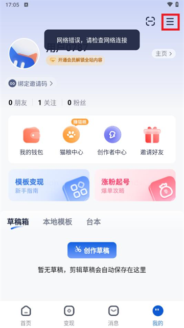 1、打开创作猫app,点击右下角“我的”选项;