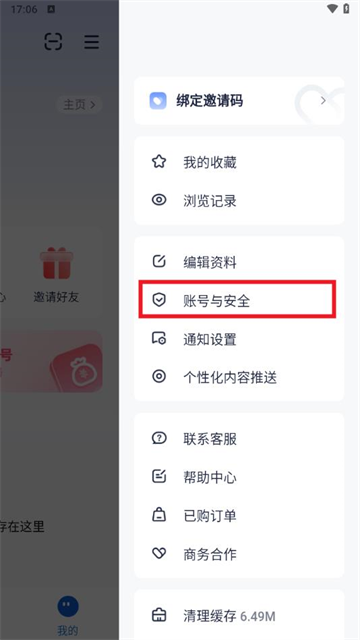 3、选择账号与安全;